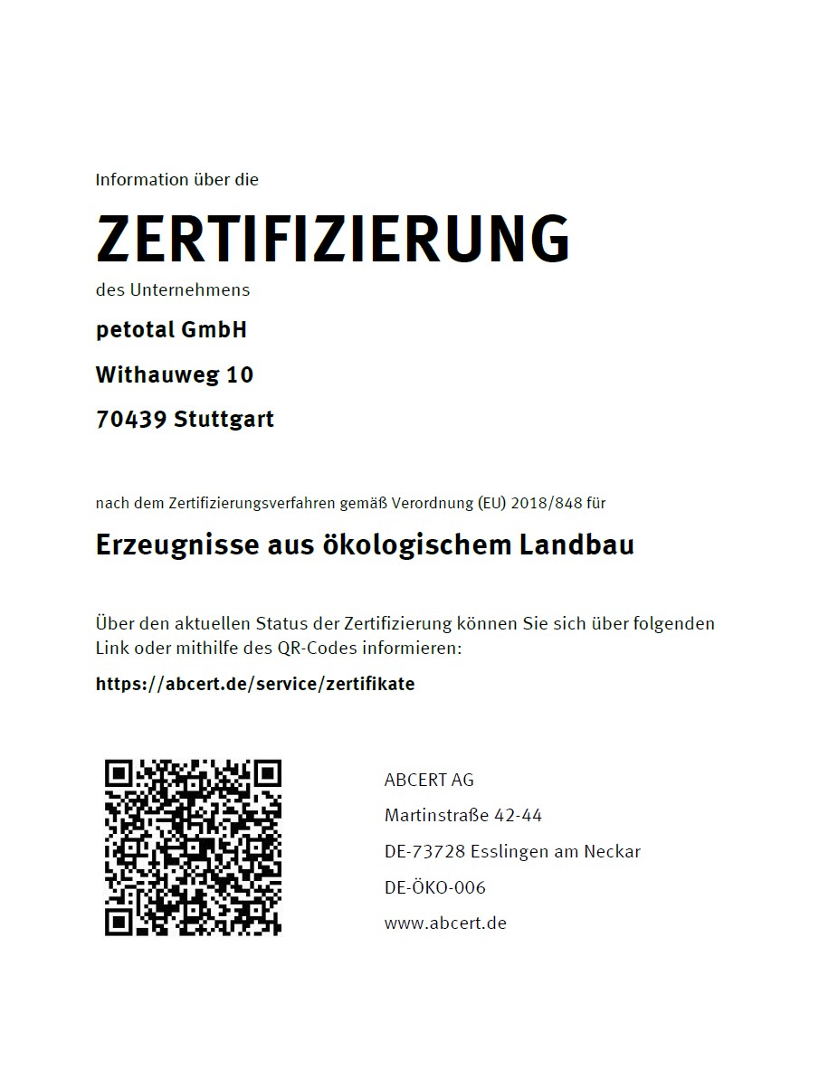 E-Mail: purchasing@petotal.de (für Hersteller, Importeure, Großhändler)