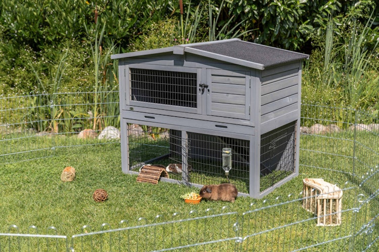 Kleintierstall mit Freilaufgehege, 124 × 102 × 78 cm, grau