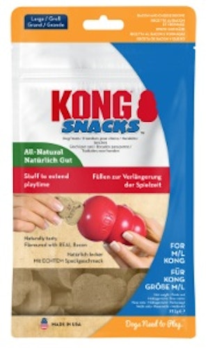 KONG Bacon and Cheese Snacks werden mit unwiderstehlichen Bacon- und Cheddararomen hergestellt. An diesen hochwertigen und schmackhaften Leckerchen kommt einfach kein Hund vorbei. Sie bestehen ausschließlich aus natürlichen Zutaten und sind frei von Weizen, Mais oder Soja. Aufgrund ihrer größeren Form passen sie perfekt in große Hundespielzeuge von KONG aus Kautschuk. - Unwiderstehliche und köstliche Bacon- und Käsearomen, um Ihren Hund zu verwöhnen. - Ideal zum Befüllen von KONG Classic und Kautschukspielzeugen, damit Ihr Hund sich länger damit beschäftigt. - Ideal für das Training oder zum Verwöhnen. - Vollkommen natürlich. - In zwei Größen erhältlich: Small (für kleine bis mittelgroße KONG-Spielzeuge), Large (für große KONG-Spielzeuge).