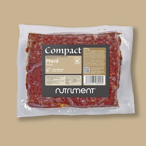 Nutriment Compact Pferd bietet proteinreiches, glutenfreies Einzelfutter aus magerem Pferdefleisch, ideal für empfindliche und allergische Hunde.