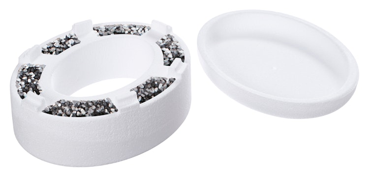 Aus Styropor, zweiteilig, kann mit Sand beschwert werden.