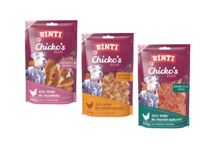 RINTI Chicko Plus werden ausschließlich aus frischem Fleisch zubereitet, ohne Fleischmehle, ohne Soja (pflanzliche Eiweißextrakte) und dazu schonend luftgetrocknet mit anschließender Sterilisation. Sie schmecken nicht nur besonders lecker, sondern sind auch so bekömmlich und gut verdaulich.