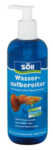 Der Söll Wasseraufbereiter sorgt für fischgerechtes Aquarienwasser. Leitungswasser kann mit Schadstoffen belastet sein und sollte für einen sicheren Einsatz im Aquarium immer aufbereitet werden. Wasseraufbereiter macht Chlor und Schwermetalle im Süßwasseraquarium zuverlässig unschädlich.