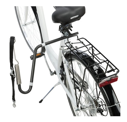 Das TRIXIE Biker-Set U-Form M-XL ermöglicht sichere, stabile und harmonische Radtouren mit mittelgroßen und großen Hunden dank federnder Leine und reflektierender Elemente.