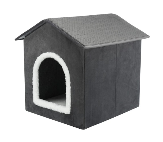 TRIXIE bietet eine zusammenfaltbare Katzenhöhle in Dunkelgrau/Weiß mit gepolsterter Liegefläche und rutschfestem Boden aus weichem Polyester.