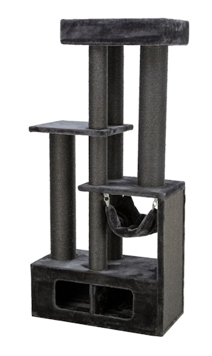 Der TRIXIE Kratzbaum für Katzen bietet eine große Sisalkratzfläche, ein Kuschelbett, eine abnehmbare Hängematte und ist aus robustem Plüsch gefertigt.