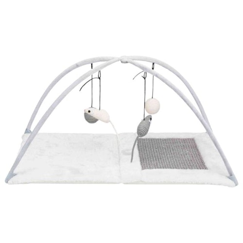 TRIXIE Kratzmatte mit Spielbogen, 60 × 33 × 42 cm, grau/lichtgrau