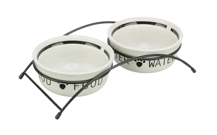 Das TRIXIE Napf-Set aus Keramik und Metall bietet stabile, hygienische Näpfe mit 2,6 l Fassungsvermögen und rutschfestem Halter für komfortables Fressen.